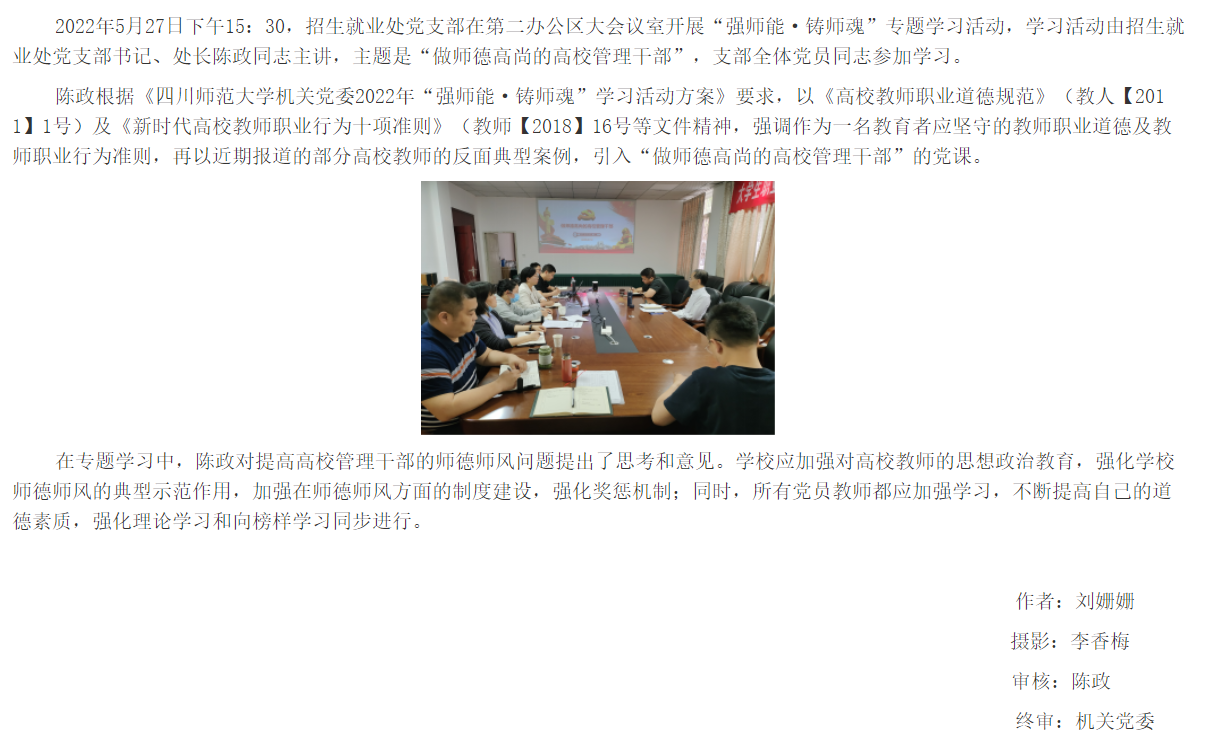 >>招生就业处党支部开展“强师能·铸师魂”专题学习活动