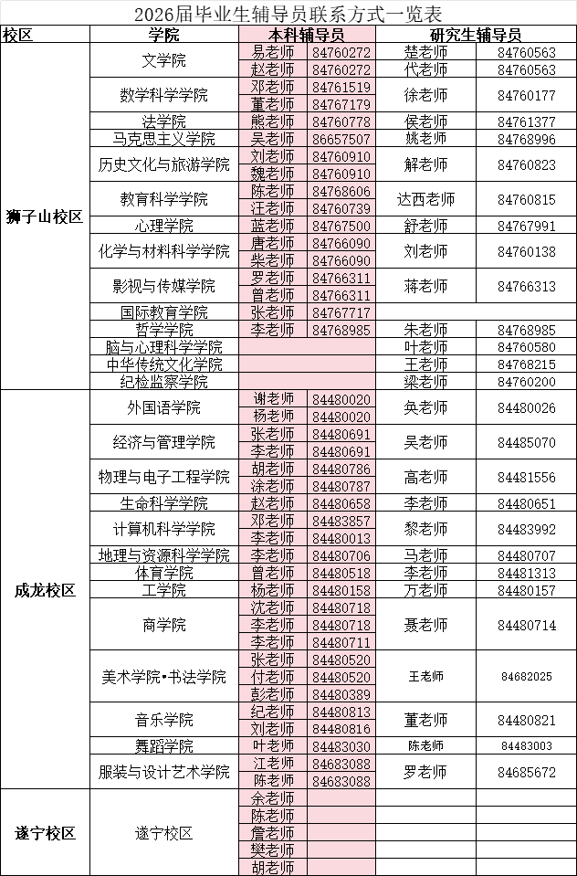 >>2026届毕业生辅导员联系方式一览表
