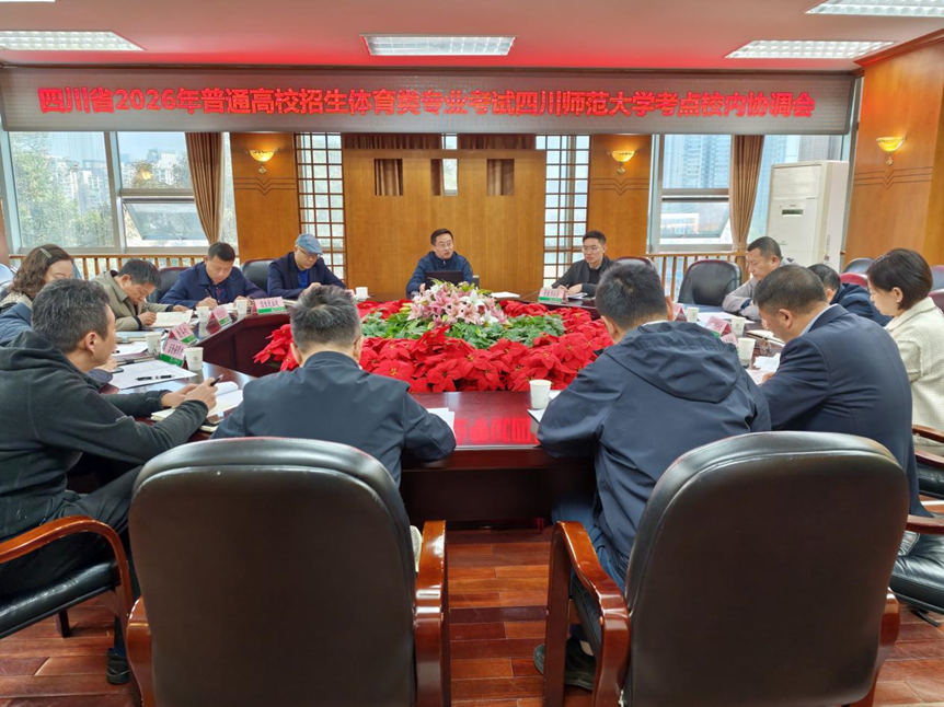 3月24日上午,我校在狮子山校区召开四川省2026年普通高校招生体育类专业考试四川师范大学考点校内协调会。校党委副书记张海东出席会议并讲话,党政办公室、党委宣传部、纪委办公室、党委保卫部、教务处、计划财务处(招投标与采购中心)、招生就业处、后勤保卫部、体育学院负责人和相关工作人员参加会议。